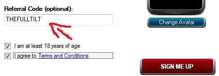 When creating a new account on Full Tilt Poker, enter the referral code in the “Referral Code” field as shown below.